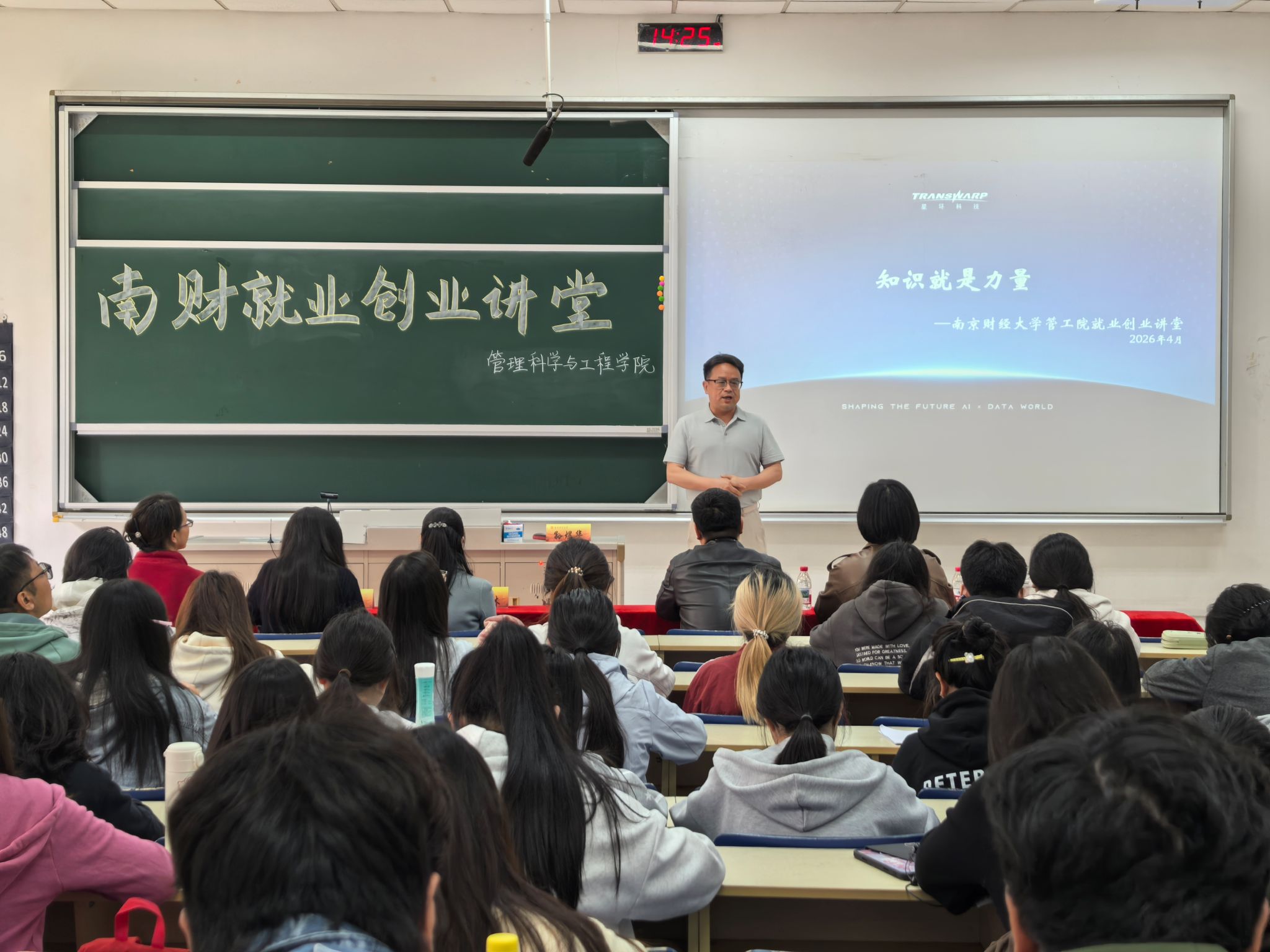 4月15日下午,williamhill英国在仙林校区德济楼112教室举办了主题为“ 新质生产力下:AI+行业就业创业全景解析”的南财就业创业讲堂。本次讲座的主讲人为星环科技副总裁兼南京星环智能科技有限公司总经理,英国威廉集团管工院校外辅导员孙煜华,南京星环智能科技有限公司副总经理、党支部书记李斌,williamhill英国党委书记金立林老师,教工党支部书记杨帆老师,学工办主任兼辅导员唐方舟老师,辅导员唐琰老师,2023级、2024级本科生和其他感兴趣的同学参加了此次讲座。讲座由魏文韬主持。
