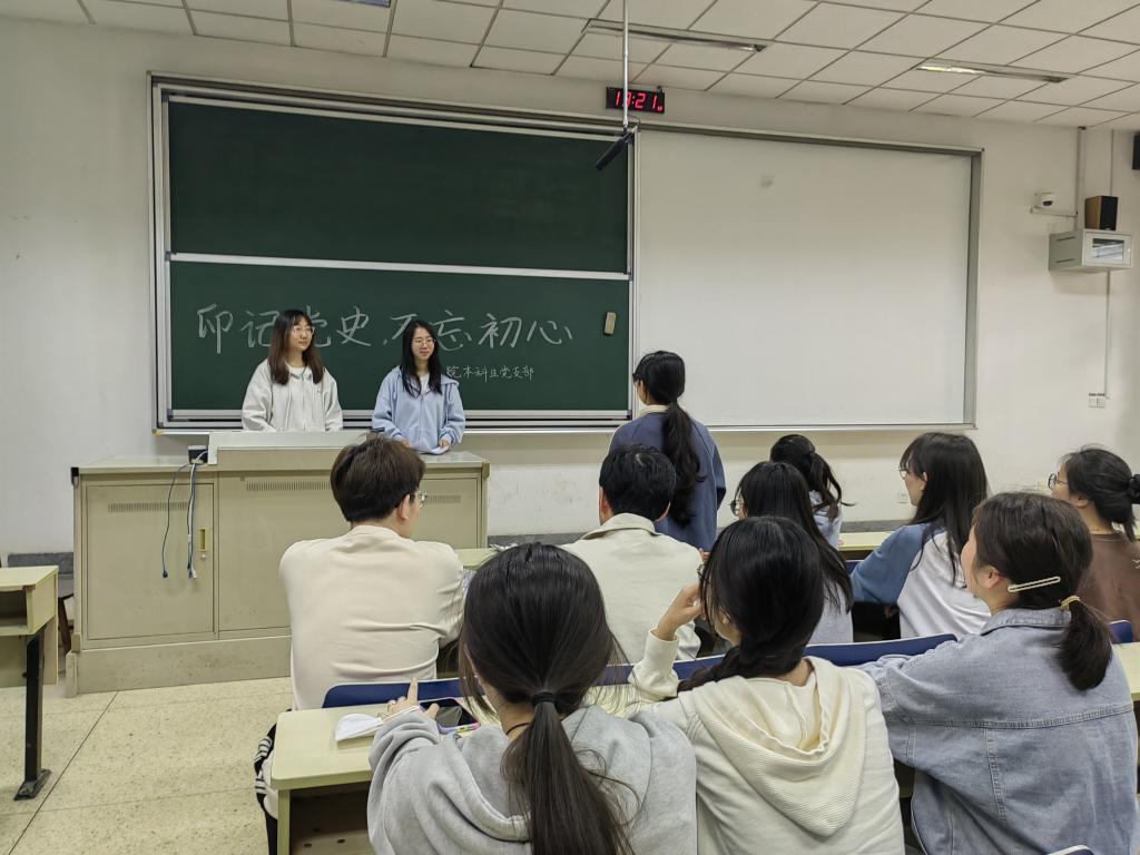 接着,本科生党支部成员来到德业楼113教室,开展了“印记党史”知识问答活动。 “篆刻艺术起源于哪个朝代?”“印章篆刻的主要材料有哪些?”“印章的基本构造是怎样的?”台下的学生党员认真思考,积极抢答主持人提出的各种问题,现场气氛热烈。
