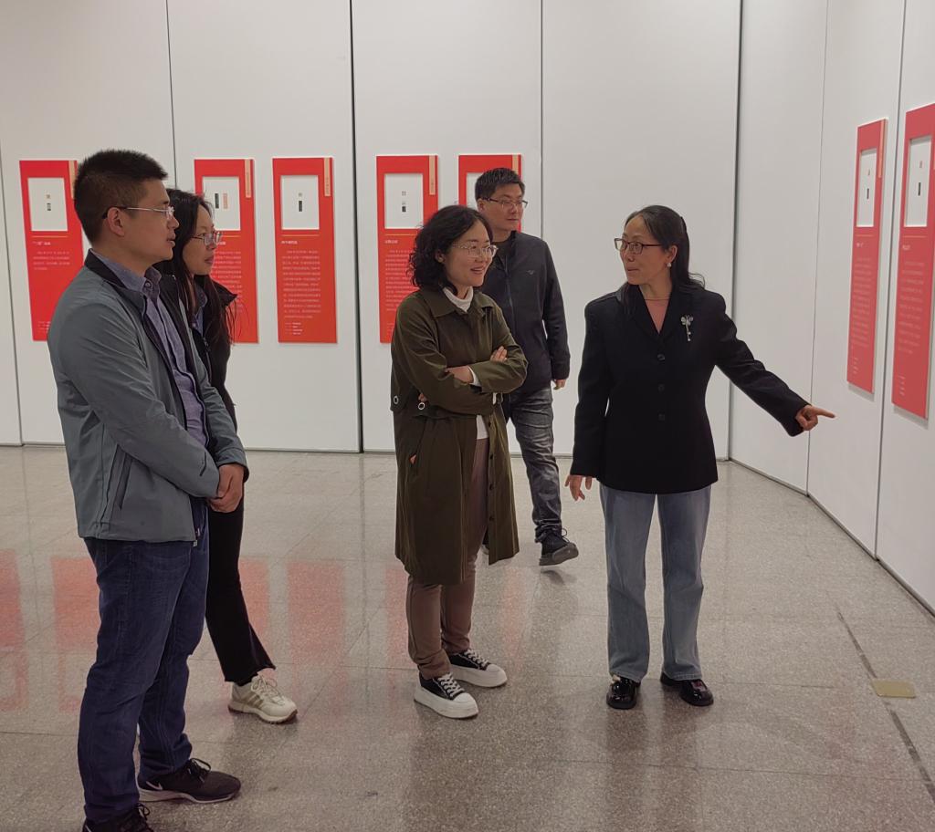 参观活动开始,主持人王辰介绍了本次展览的背景和主题。篆刻作为中国传统艺术的重要组成部分,承载着丰富的历史文化内涵。通过对篆刻艺术的主题创作,可以生动展现中国共产党的党史大事记,重温党的辉煌历程,弘扬党的优良传统,激发党员的爱国情怀和社会责任感。随后,主持人刘寒驰带领全体成员进行参观学习,她向大家介绍了展柜中的篆刻作品,她的讲解严谨认真,条理清晰。